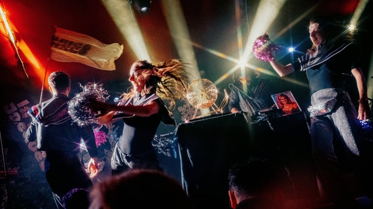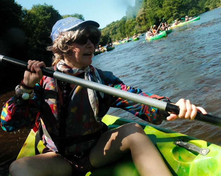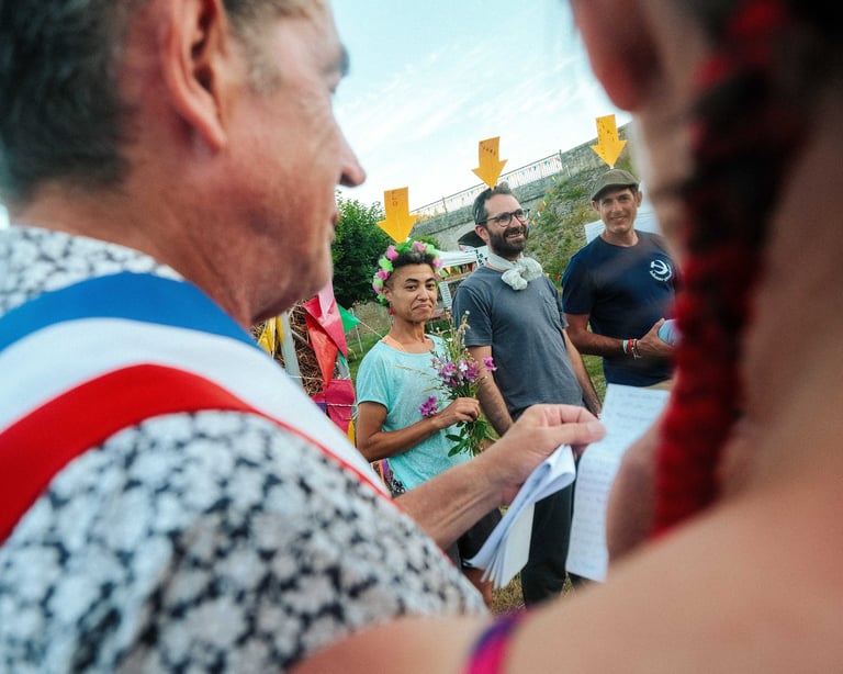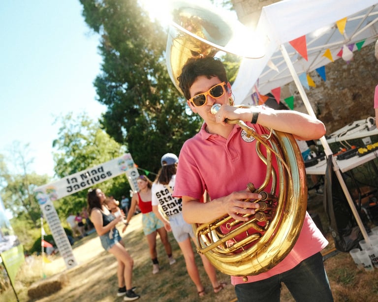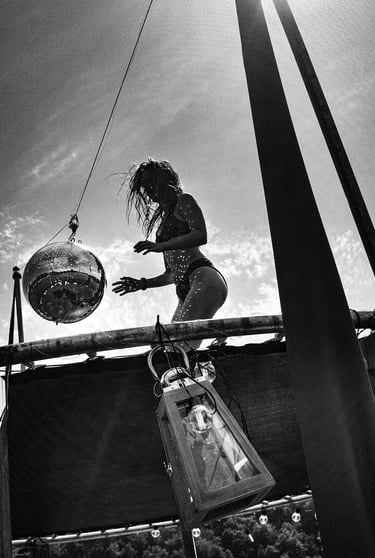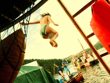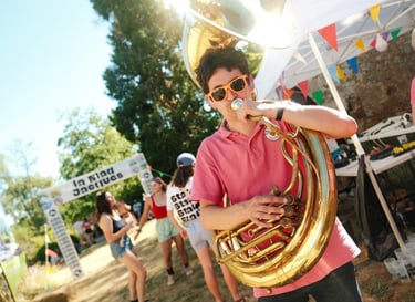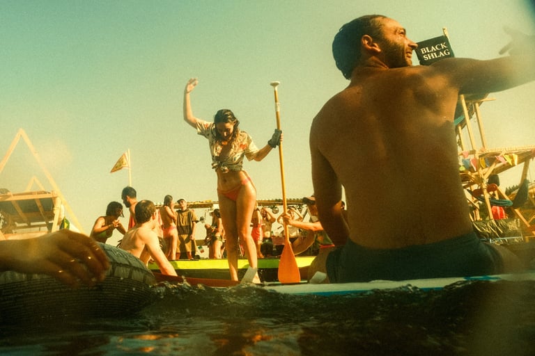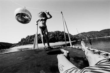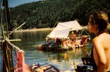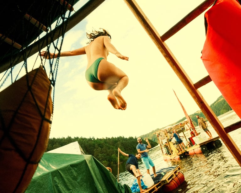 Tutto Blu est un rassemblement artistique sur l’eau. Chaque été, notre village flottant dérive sur un grand lac du Cantal.