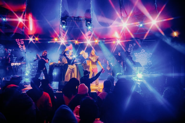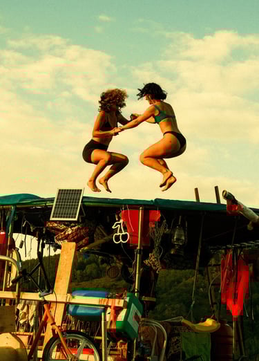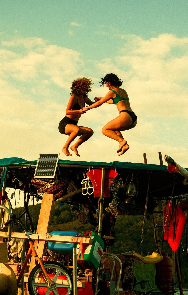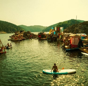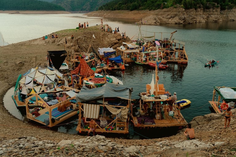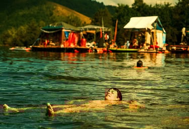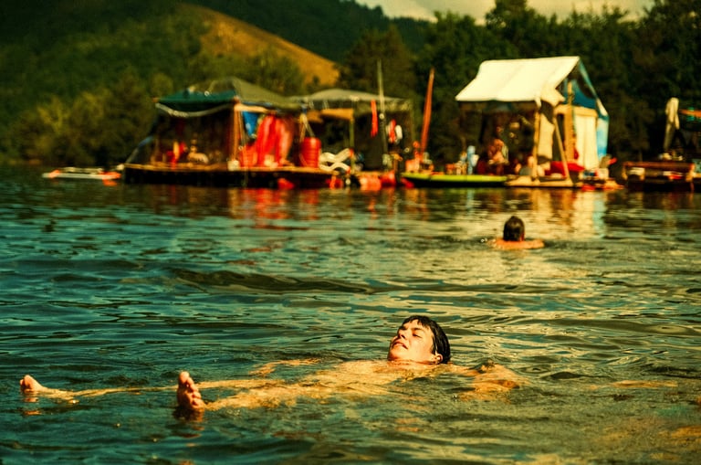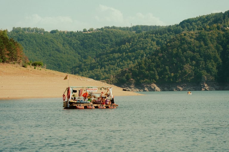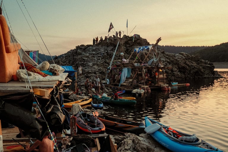 Tutto Blu est un laboratoire flottant pour l’imaginaire : chaque radeau est une œuvre nomade qui navigue librement sur le plan d'eau au cœur des montagnes. Là, le temps ralentit, et les nuits s’illuminent.